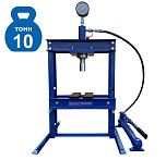Усилие 10 тонн. Настольный. Ручной. Для запрессовки подшипников, деталей машин, втулок и т.п. в автосервисе, мастерских по ремонту лодочных моторов, велосипедов и т.п. Гидроцилиндр с пуансоном имеет возможность перемещения по всей ширине рамы. Контроль усилия – визуально по шкале манометра. Интервал пуансона 135 мм. Рабочее окно: 400 x 350 мм.