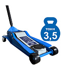 Гарантия 1 год. Профессиональный. Для интенсивной эксплуатации. Подкатной. Низкопрофильный. Двухштоковый механизм. Усиленная конструкция. Быстрый подъем. Имеет повышенную износостойкость. Поворотная ручка, тавотница, лоток для хранения и резиновая накладка на чашку домкрата в комплекте. Г/п.—  3,5 тонны с усиленными ребрами жесткости.  Высота подъема мин / макс - 95-552 мм. Вес: 46 кг.