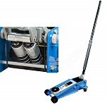 Для профессионалов. Двухплунжерный механизм быстрого подъема. Домкрат имеет повышенную износостойкость. Подкатной. Грузоподъемность 3 тонны с усиленной конструкцией. С тавотницей и резиновой накладкой на чашку домкрата в комплекте. Высота подъема 130-460 мм. Вес: 31,5 кг.