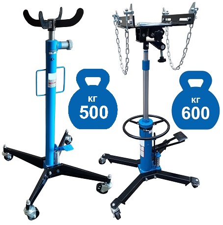 Стойка трансмиссионная гидравлическая г/п 500 кг. для снятия/установки КПП, мостов, редукторов, суппортов и др. агрегатов автомобиля. Высота подъема 870 мм. Двухплунжерный насос. Оборудована площадкой с цепями для фиксации агрегата. Вес: 59 кг.