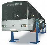 г/п. 15 тонн. Стационарный. Шестистоечный. Электромеханический привод червячный через редуктор с концевыми выключателями нажимного действия, ограничивающими ход каретки и многоуровневой системой безопасности. Предназначен для подъёма автобусов и троллейбусов сцепок, подхват за поддомкратные площадки. По отдельному заказу комплектуется установочными рамами. Поставляется в 2 вариантах Стандарт (в помещение) и ТЗ (Для эксплуатации на улице).