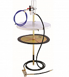 Нагнетатель предназначен для раздачи густой смазки из бочек объемом 190 л. Состоит из 2-х независимых и раздельных насосных систем, что предотвращает попадание отработанной влаги компрессора в емкость с перекачиваемым маслом. Длина шланга: 6 м. Давление смазки: 180-405 бар. Коэффициент передачи давления: 5:1. Производительность: 30 см³/с. Длина раздаточного шланга: 305 см. Вес: 15,5 кг.