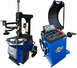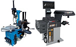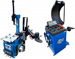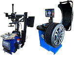 Комплект из автоматического шиномонтажного станка TS-3226А. Для дисков: 11÷24”. В комплекте: полноценная 3-й рука для работы с жесткой и низкопрофильной резиной RUNFLAT. + встроенный бустер  24 литра (взрывная подкачка) + пистолет для подкачки шин + монтажка + регулятор давления с влагоотделителем и манометром. + Proxy-8-3 автоматический балансировочный станок для колес с диаметром диска 9-28 дюймов, при ручном вводе до 30 дюймов и шириной до 20 дюймов. В комплекте: монитор SVGA + кожух с автозапуском + клещи + кронциркуль + пневмоприжим + набор конусов + лазерная навигация + электромагнитный тормоз + ультразвуковой датчик ширины.