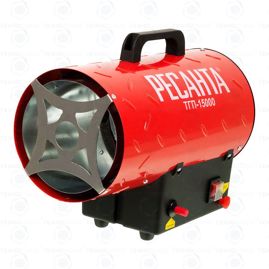 Газовая тепловая пушка РЕСАНТА ТГП-15000 – воздухонагреватель, работающий на сжиженном газовом топливе. Топливо необходимо для получения горячей атмосферы в камере сгорания, а электроэнергия, подводимая к устройству, необходима для питания вентилятора, нагнетающего воздух, и для функционирования автоматики. Газовые пушки прямого нагрева являются простой и надёжной конструкцией без дымохода, где горячий воздух из устройства поступают в помещение.