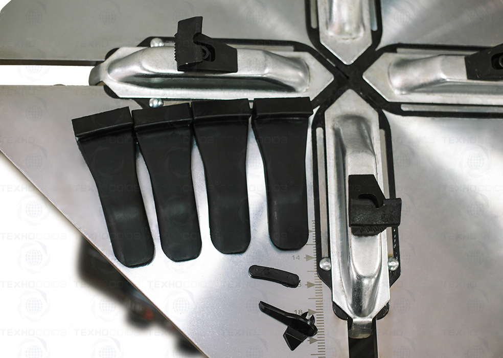 В комплекте - пластиковые вставки в монтажную лапу, накладка на отжимную лапу, насадки на зажимные кулачки;