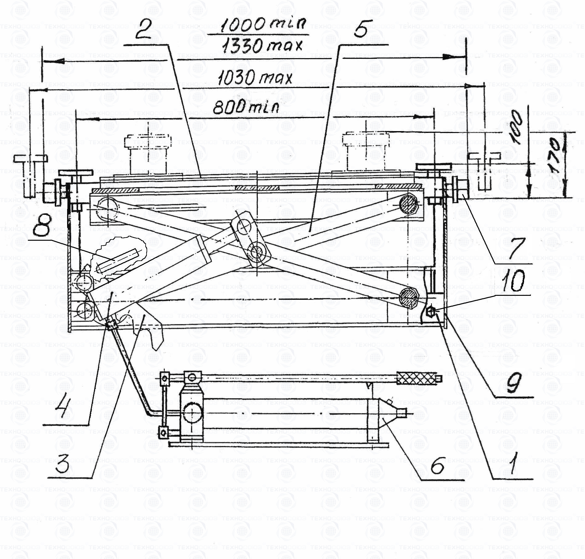 Минимальная высота подъема упоров над уровнем пола, мм 110