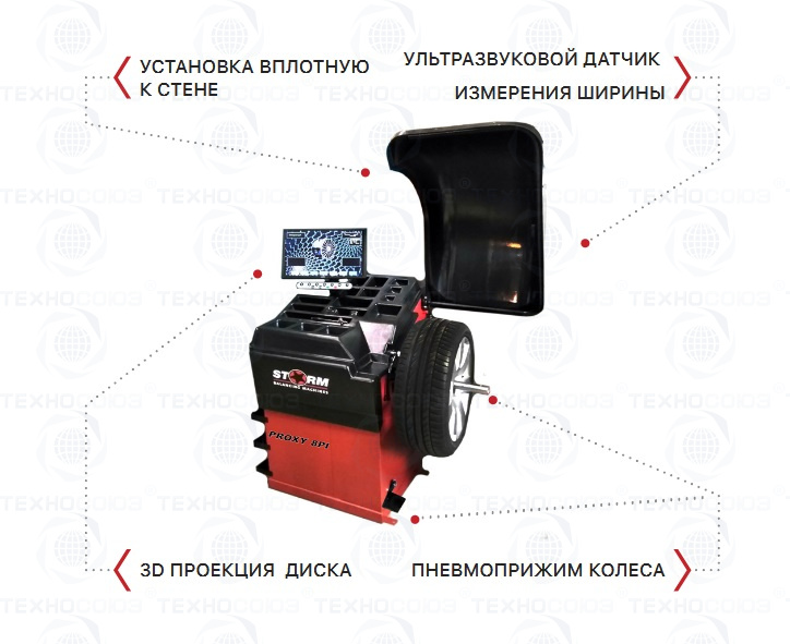 Proxy 8-2PI - это НОВИНКА - Супер автоматический стенд виброконтроля и балансировки колес класса Люкс. Автоматический балансировочный станок станок оснащен ультразвуковым датчиком измерения шины (3-рука), с 21'  LCD монитором и функцией голосового сопровождения действий. До 180 отбалансированных колес в час. Отправка данных на e-mail. Сохранение статистики и настроек. Пневмоприжим. Лазерная навигация. Электромагнитный тормоз и др.
