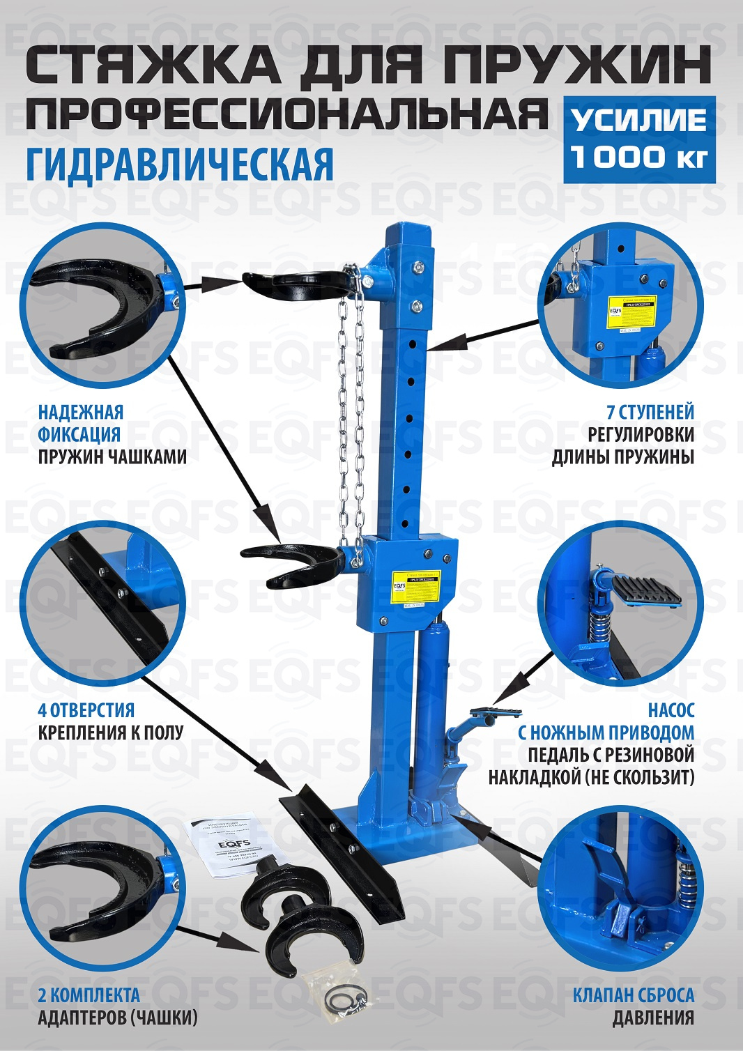 • Стяжка для пружин сертифицирована для продажи в России и ЕС.