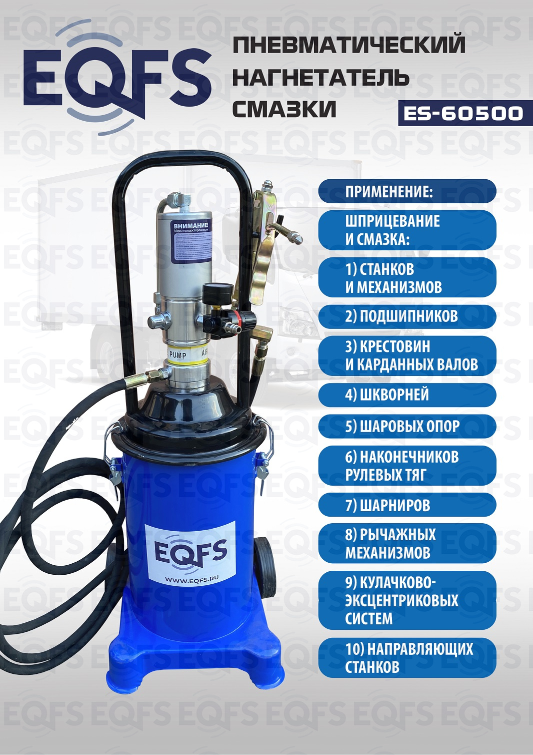 Технические особенности пневматический нагнетатель смазки ES-60500:
