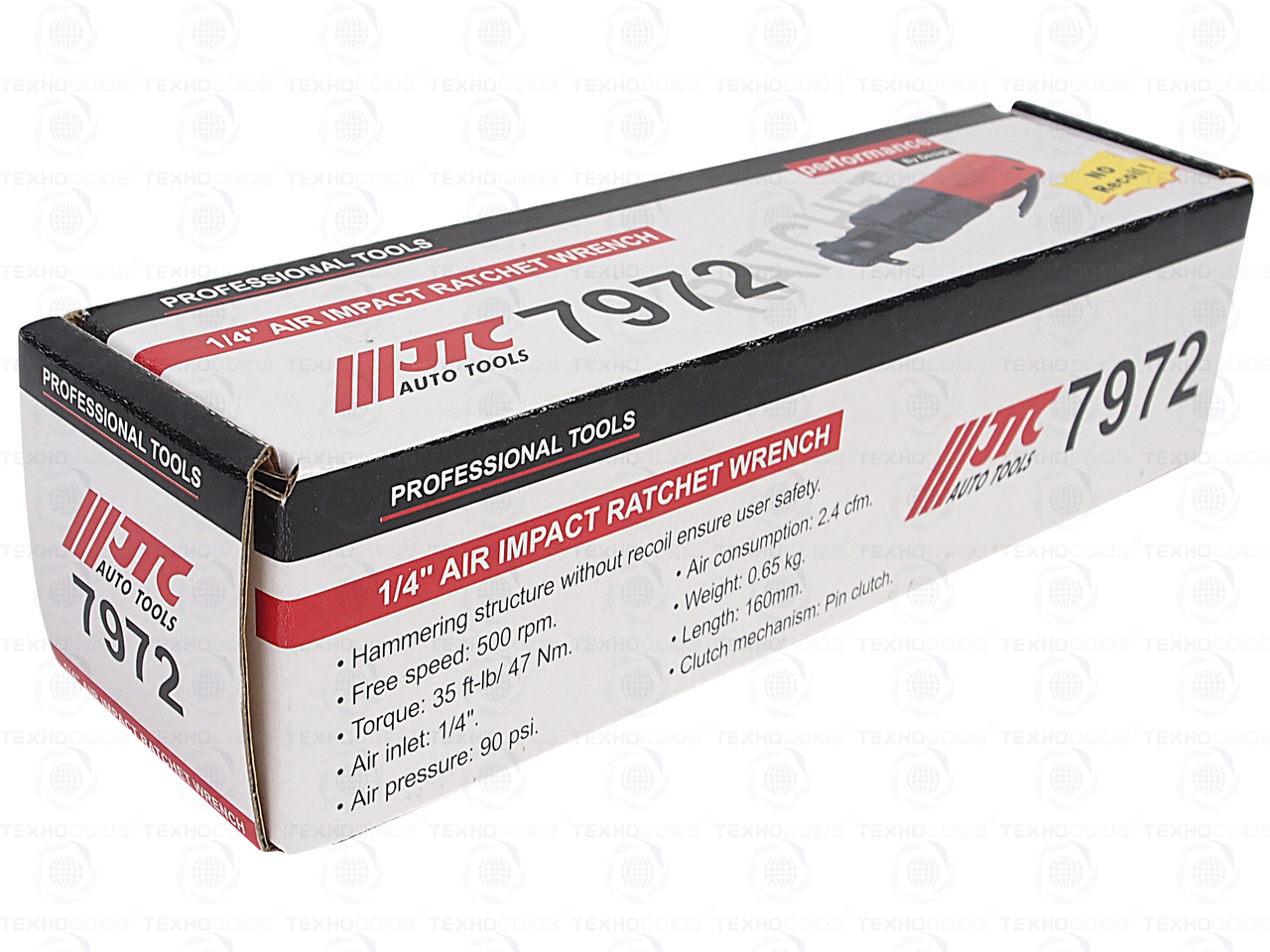 JTC-7972 КЛЮЧ ТРЕЩОТКА ПНЕВМАТИЧЕСКИЙ 1/4" 47НМ 90PSI 500ОБ/МИН. УСИЛЕННАЯ УДАРНАЯ