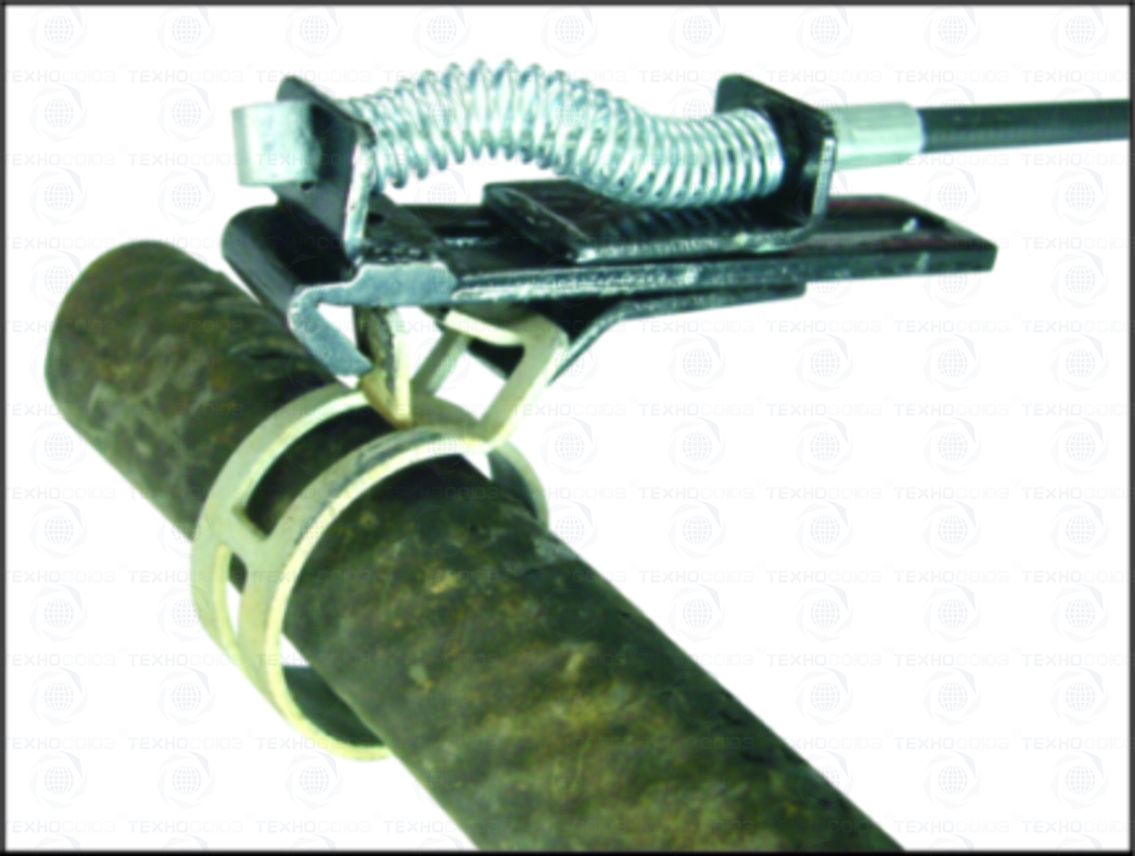 Фиксатор на конце троса начнет сжимать хомут.