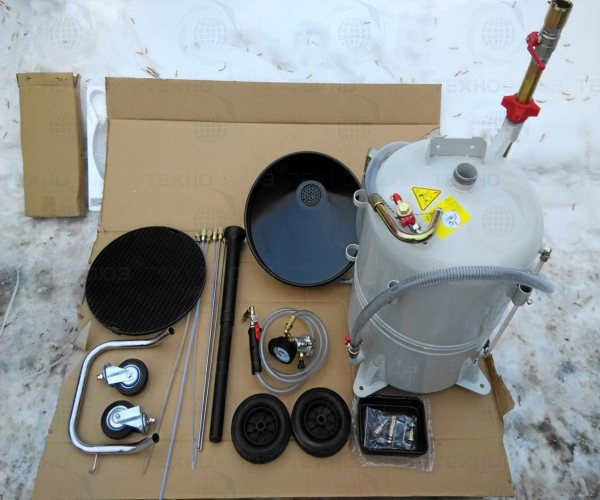 •    Шланг слива отработки из резервуара оборудован металлическим наконечником и резьбовой заглушкой для предотвращения разлива масла на пол цеха.