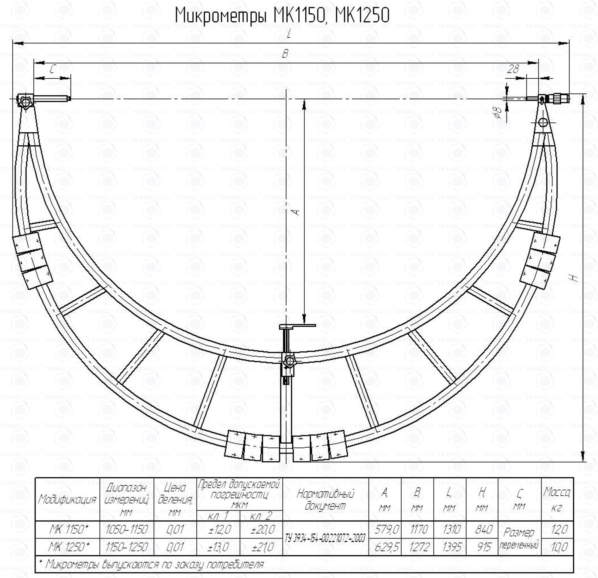 Цена деления 0,01 мм. Диапазон измерения от 1150-1250 мм. Для измерения наружных размеров изделий. Измерительные поверхности микрометра оснащены твердым сплавом. Микрометры укомплектованы передвижной упор, позволяющий при работе микрометра устанавливать на измеряемую поверхность + установочная мера 2 шт. Класса точности 1. ГОСТ 6507-90. Поставляется в двух вариантах с поверкой и без поверки!