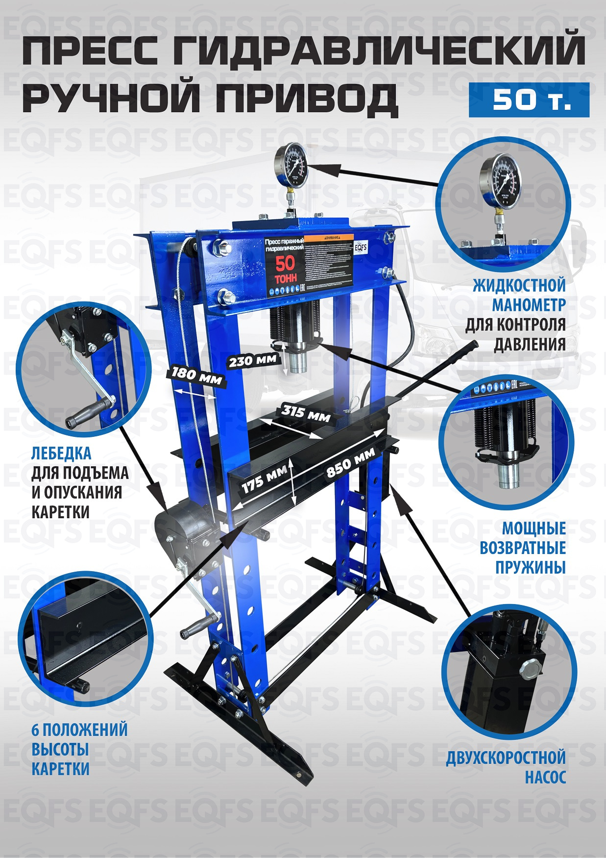 Пресс гидравлический ручной, 50 тонн, ES0500-6