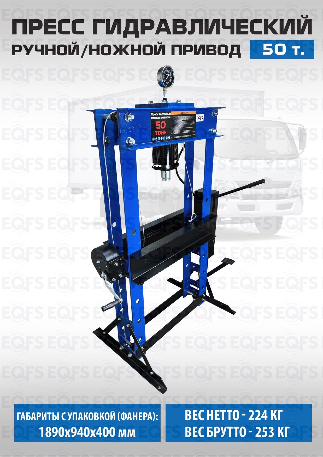 Пресс гидравлический ручной/ножной, 50 тонн, ES0500F-6