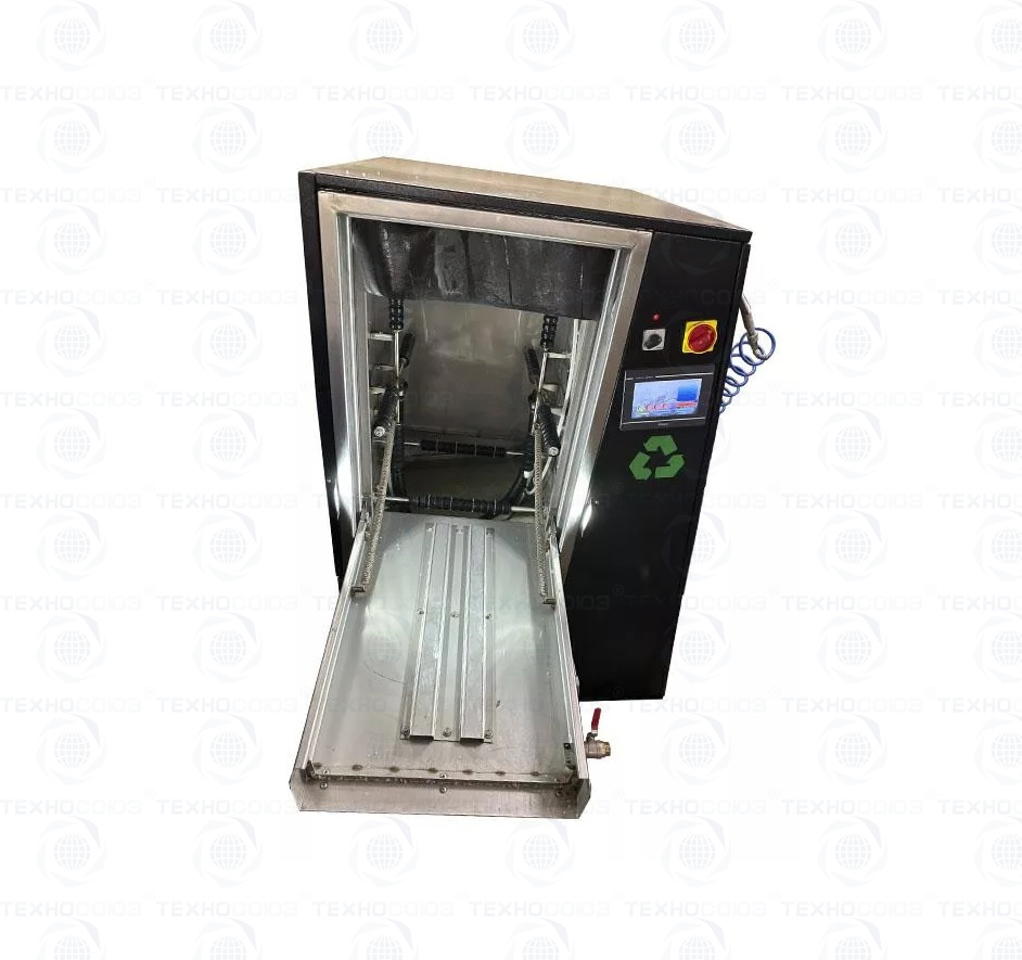 Мойка для колес состоит из ванны, моечного шкафа с шумоизоляцией, системы подачи моечной смеси, системы привода колеса, пневмосистемы, системы подогрева воды, сенсорного дисплея и системы управления.