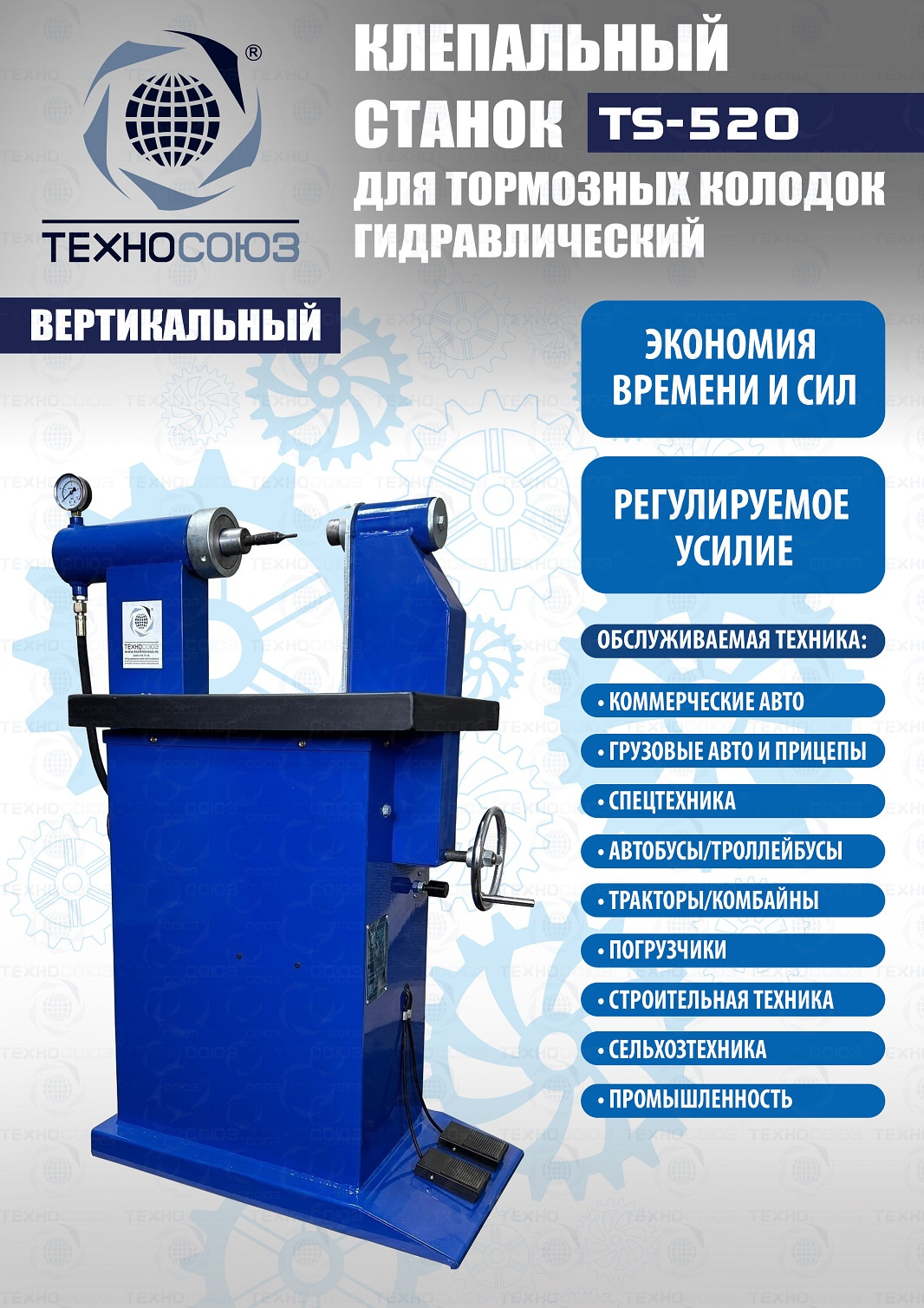 Клепальный станок управляется нажатием на педали. Выпрессовка заклепок диаметром до 12 мм осуществляется при замене изношенных накладок во время ремонта автомобилей в автосервисах, станциях технического обслуживания и автотранспортных предприятиях. Клепальный станок используется для работы с различными видами и формами заклепок изготовленных из стали, меди и алюминия. В стандартной комплектации предусмотрены пуансоны для работы с отечественными и импортными автомобилями.